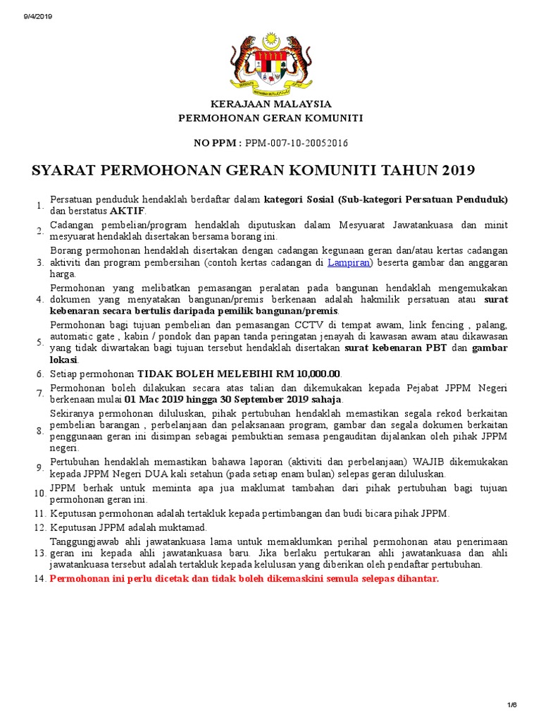 Garis Panduan Permohonan Geran Mpkk 2019 Pdf