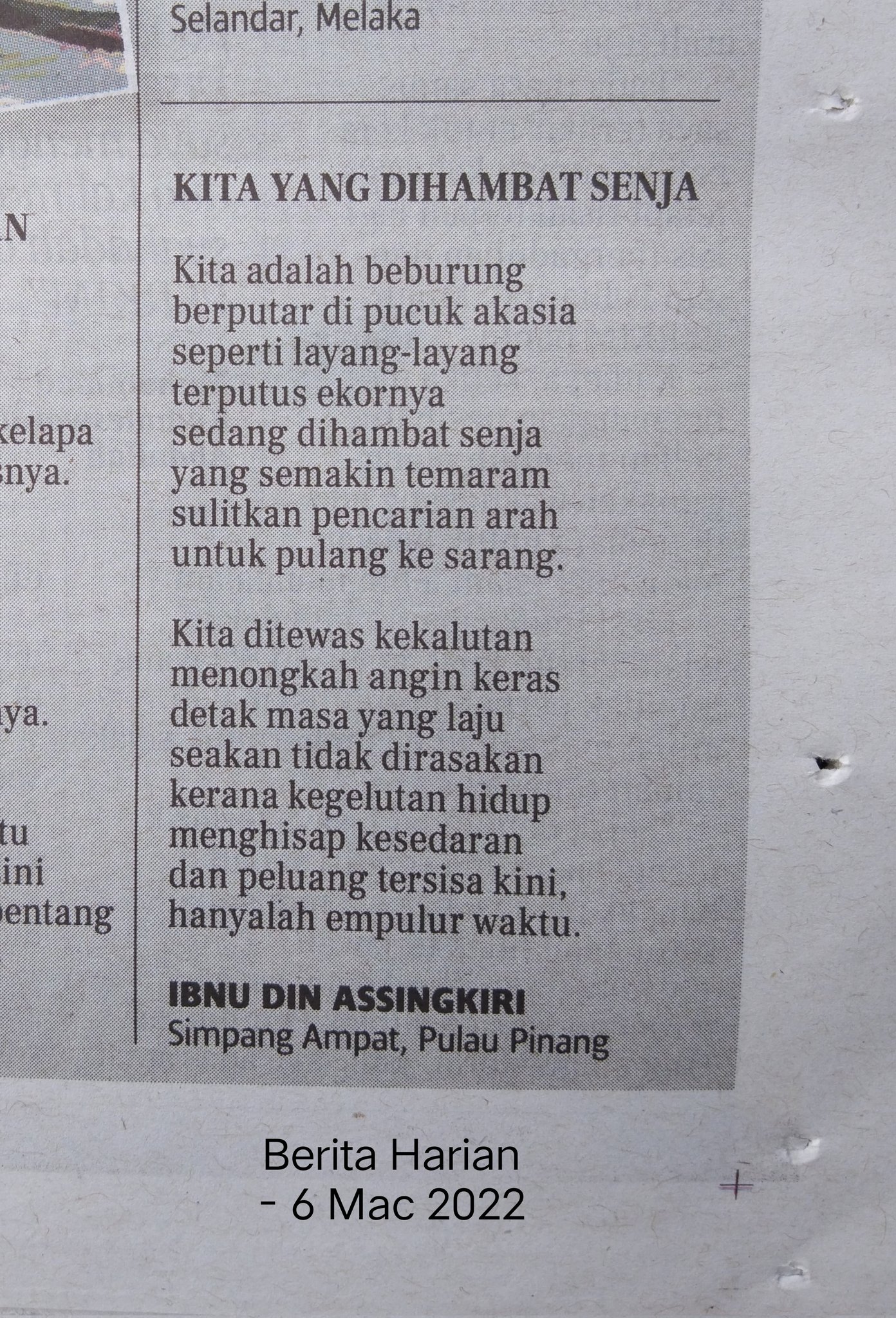 Daripada menanggung malu lebih baik mati. Mulanya tinggal di Syurga kemudian Allah swt turunkan mereka ke Dunia. Tanah getah geran putih 6 ekar Bintangor.